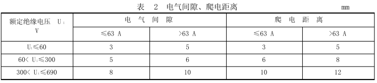 母線槽內不同極性的裸露帶電導體之間以及它們與外殼之間的電氣間隙、爬電距離應不小于表的規定。