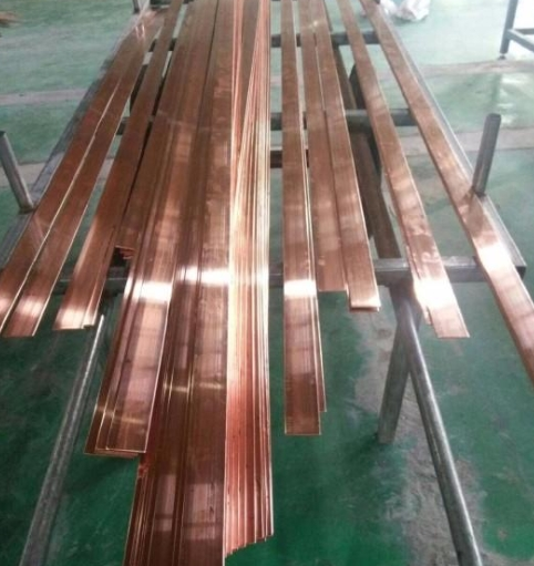 如圖是現(xiàn)已噴涂完結(jié)正在機床上等待最終拼裝加工的母線槽的母線銅排。
