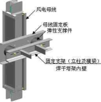 4.彈性支撐件:選用彈性支撐件作為母線裝置支架,可有用消除塔架支架誤差及風(fēng)塔轟動對母線槽的影響。