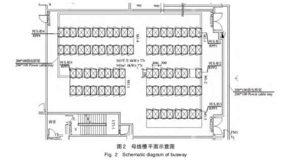 2.4聯(lián)接盒接線盒能夠在母線槽主體上設(shè)備,接線盒內(nèi)置控制空開(kāi)及給機(jī)柜供電的插座。現(xiàn)在工作上,接線盒在母線槽主體上設(shè)備,大多數(shù)均支撐熱插拔辦法,活絡(luò)卡位固定,便當(dāng)隨時(shí)為擴(kuò)容負(fù)載供給電氣聯(lián)接。接線盒在母線槽主體上具體設(shè)備方位工作上根本由兩種規(guī)劃情況,固定設(shè)備和活絡(luò)設(shè)備,Schneider等供貨商選用固定式方位設(shè)備,即母線槽主體上每隔600mm預(yù)留一個(gè)設(shè)備孔位供給接線盒設(shè)備。PDI、Startline等供貨商可在主體就任何方位設(shè)備。對(duì)不同尺度規(guī)范機(jī)柜擺放而言,無(wú)疑后者愈加適合機(jī)房的規(guī)劃。2.5監(jiān)控模塊監(jiān)控模塊分為結(jié)束及主控單元兩部分。結(jié)束單元為機(jī)房母線槽經(jīng)過(guò)在端部饋電模塊、接線盒等部件配備智能化電量?jī)x等電氣搜集模塊,可即時(shí)搜集功率、電流、電壓等電氣數(shù)據(jù)。主控單元包括硬件主控單元和軟件管理途徑。機(jī)房母線槽規(guī)劃本文以某約300平米的電力機(jī)房為例,進(jìn)行母線槽方案和傳統(tǒng)列頭柜方案規(guī)劃比較。該區(qū)域可安頓9列機(jī)柜,每個(gè)列頭柜對(duì)就近兩列機(jī)柜供電,每個(gè)機(jī)柜尺度為800mm×1100mm。如圖2所示。