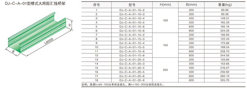 大跨距橋架分梯級(jí)式、槽式、托盤(pán)式三種型號(hào)。A型、B型二種類(lèi)別,支撐間距為6m,當(dāng)跨距大于6m時(shí)可接受特殊訂貨。