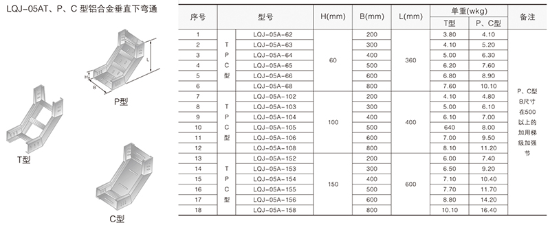 鋁合金電纜橋架在某種結(jié)構(gòu)形式中無(wú)其它結(jié)構(gòu)形式中的某-種產(chǎn)品類(lèi)別,選型可作代用表示。例如:在LQU-CC型槽式鋁合金電纜橋架結(jié)構(gòu)形式中,無(wú)鋁合金配線(xiàn)橋架中的LPC-03D, 即表示為LFC-CC-03D。