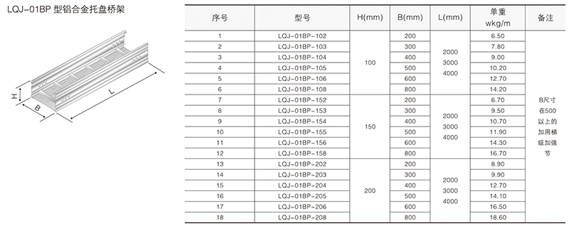 鋁合金電纜橋架在某種結構形式中無其它結構形式中的某-種產品類別,選型可作代用表示。例如:在LQU-CC型槽式鋁合金電纜橋架結構形式中,無鋁合金配線橋架中的LPC-03D, 即表示為LFC-CC-03D。